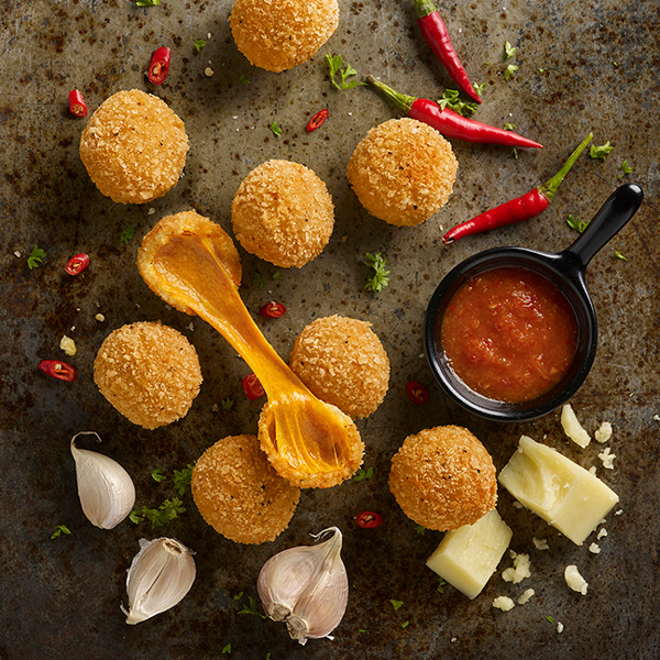 Slowly tempered and hand-pulled, rich and savoury fresh milk is transformed into light, yet decadent, stretchy mozzarella. Each bite is accentuated with unique flavour pairings, with a crunchy breaded exterior that reveals an irresistibly creamy interior. Served hot to maximise that iconic mozzarella cheese pull, it's a mouthwatering feast for your senses, perfectly suited for any occasion.